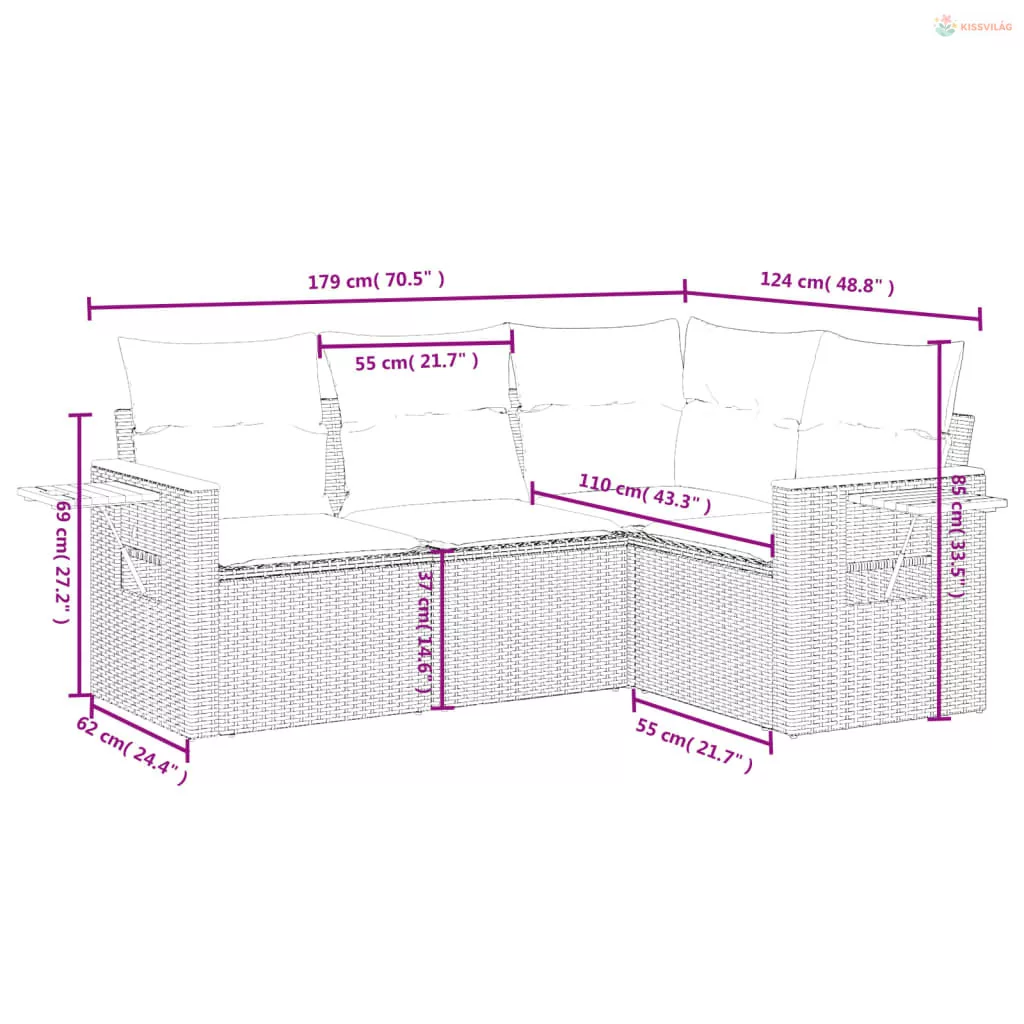 4 részes szürke polyrattan kerti ülőgarnitúra párnákkal