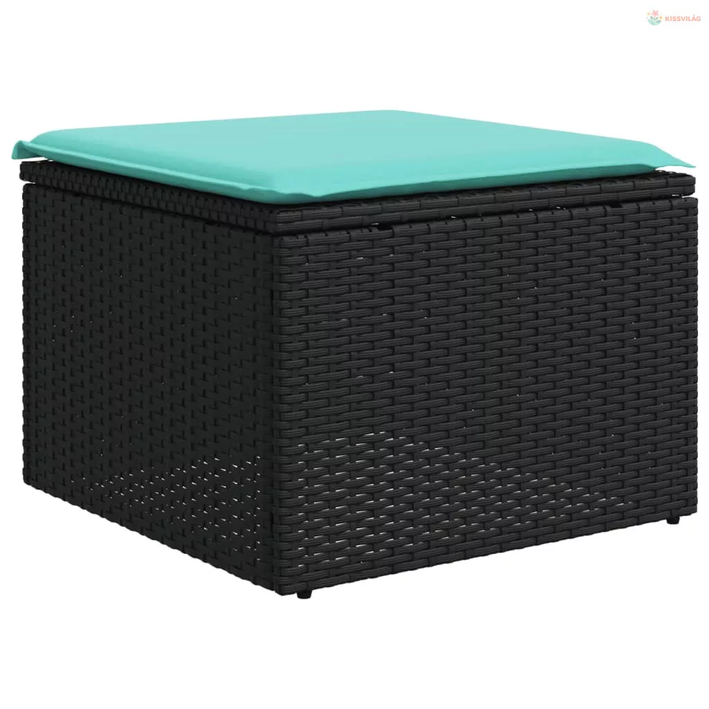 10 részes fekete polyrattan kerti ülőgarnitúra párnával
