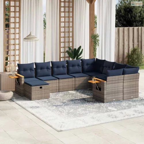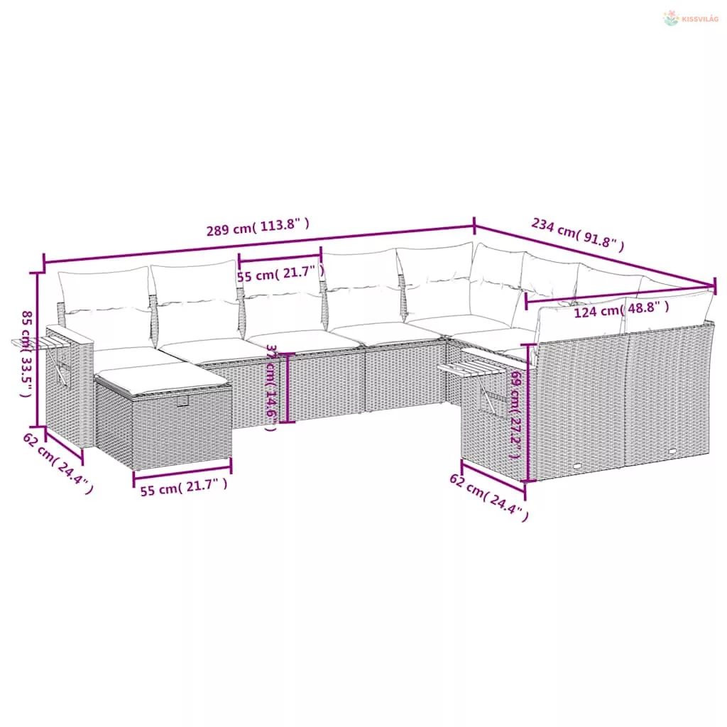 10 részes szürke polyrattan kerti ülőgarnitúra párnával