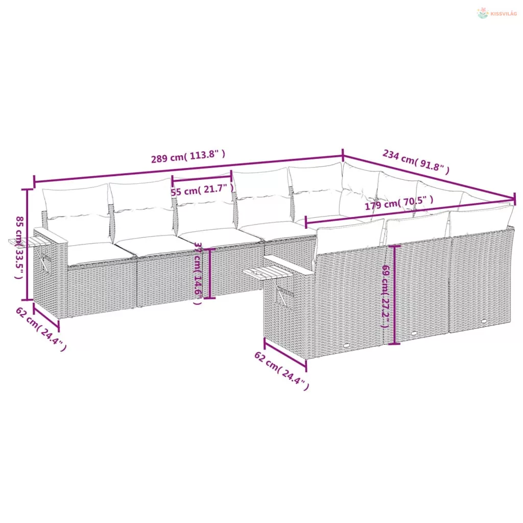 10 részes fekete polyrattan kerti ülőgarnitúra párnával