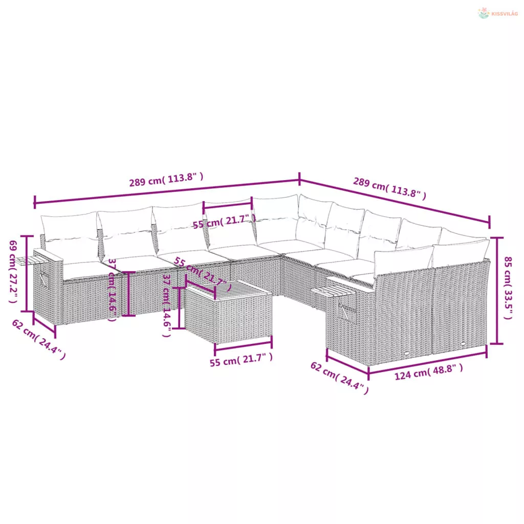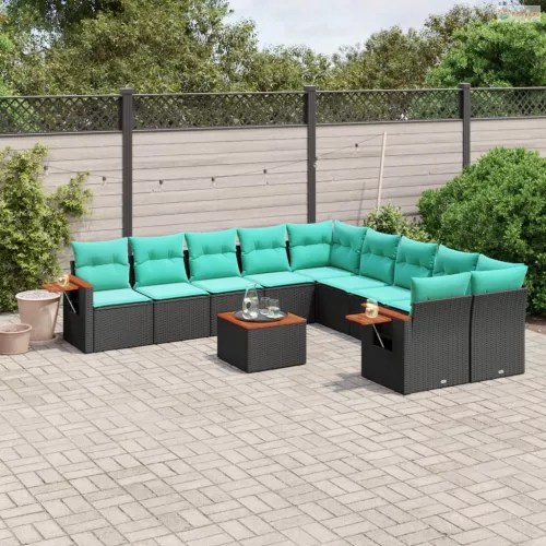 11 részes fekete polyrattan kerti ülőgarnitúra párnákkal