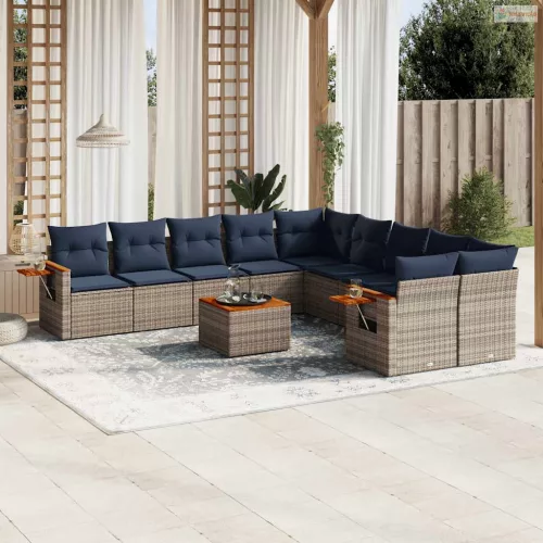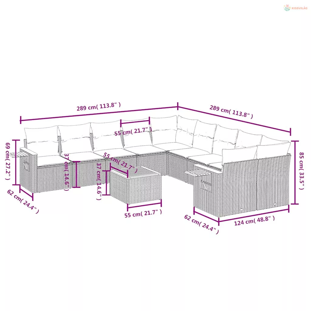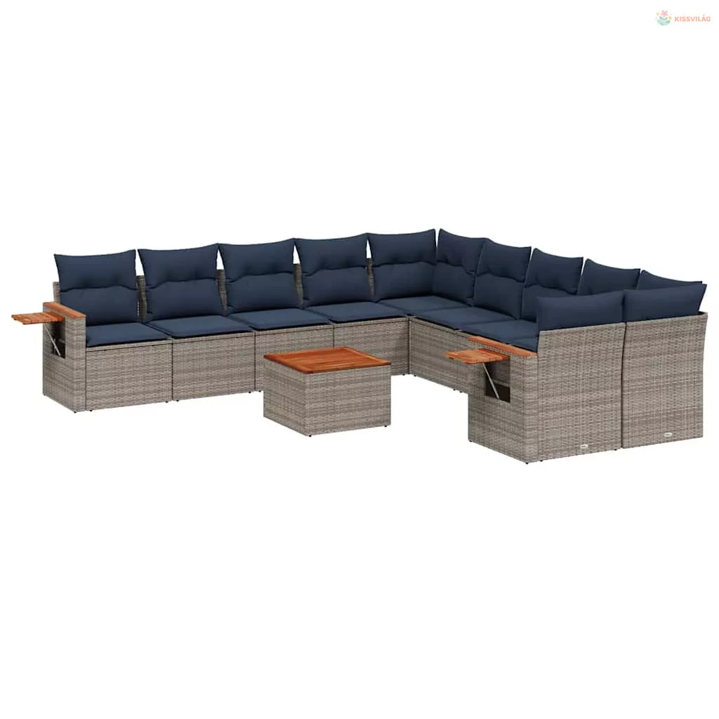 11 részes szürke polyrattan kerti ülőgarnitúra párnákkal