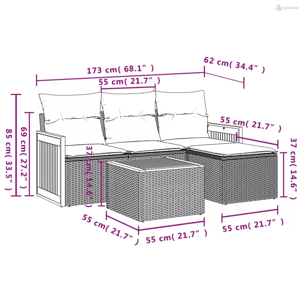 5 részes szürke polyrattan kerti ülőgarnitúra párnákkal