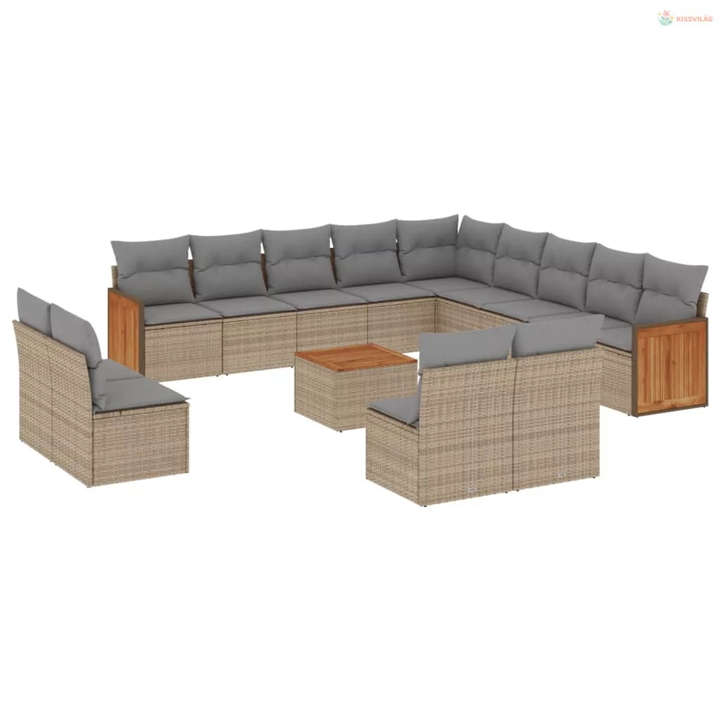14 részes bézs polyrattan kerti ülőgarnitúra párnával