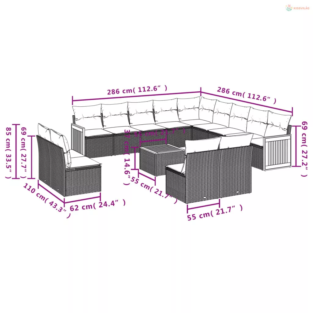 14 részes szürke polyrattan kerti ülőgarnitúra párnákkal