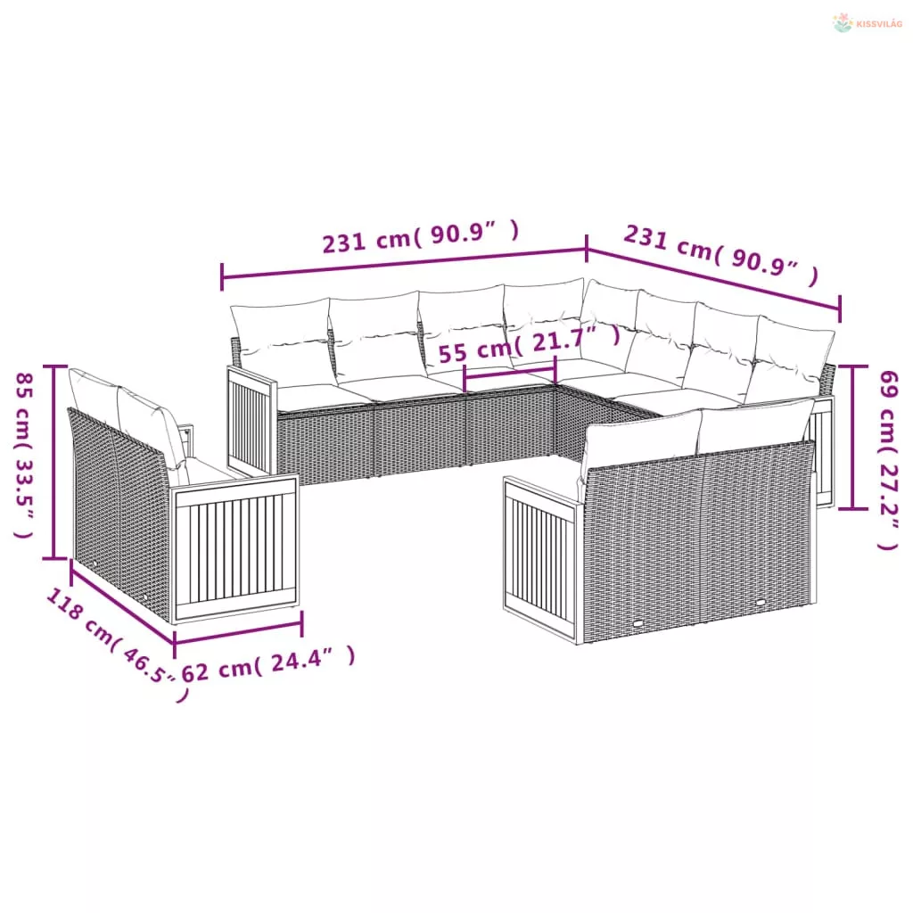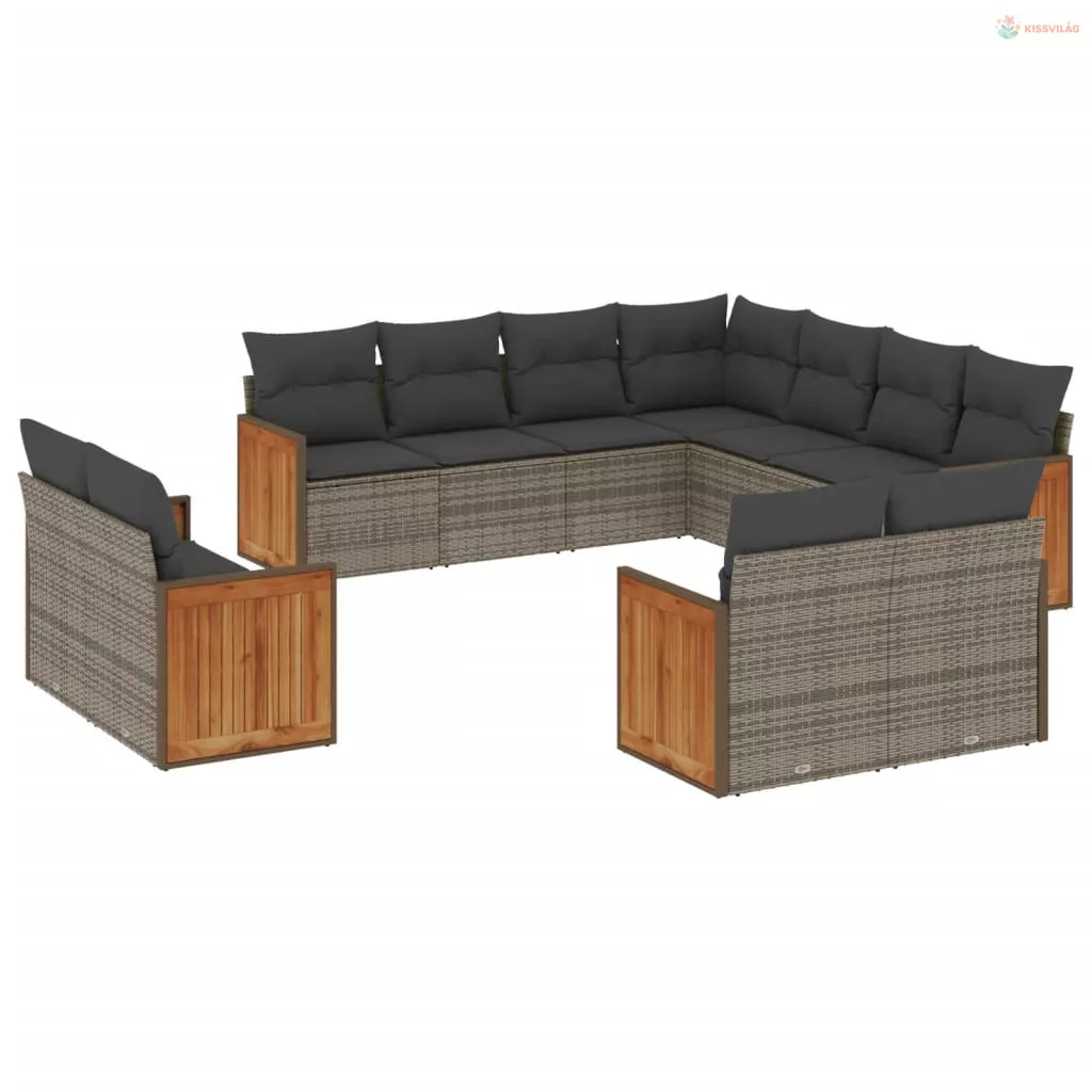 11 részes szürke polyrattan kerti ülőgarnitúra párnákkal