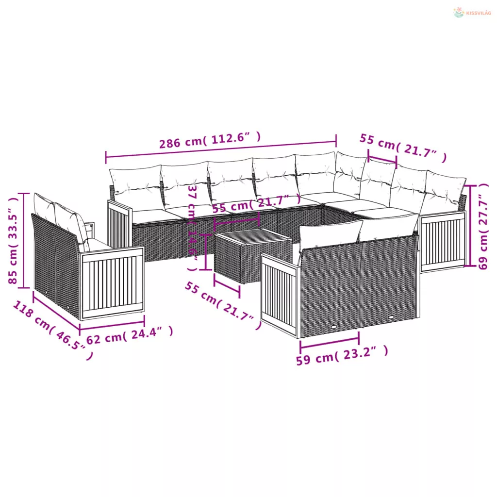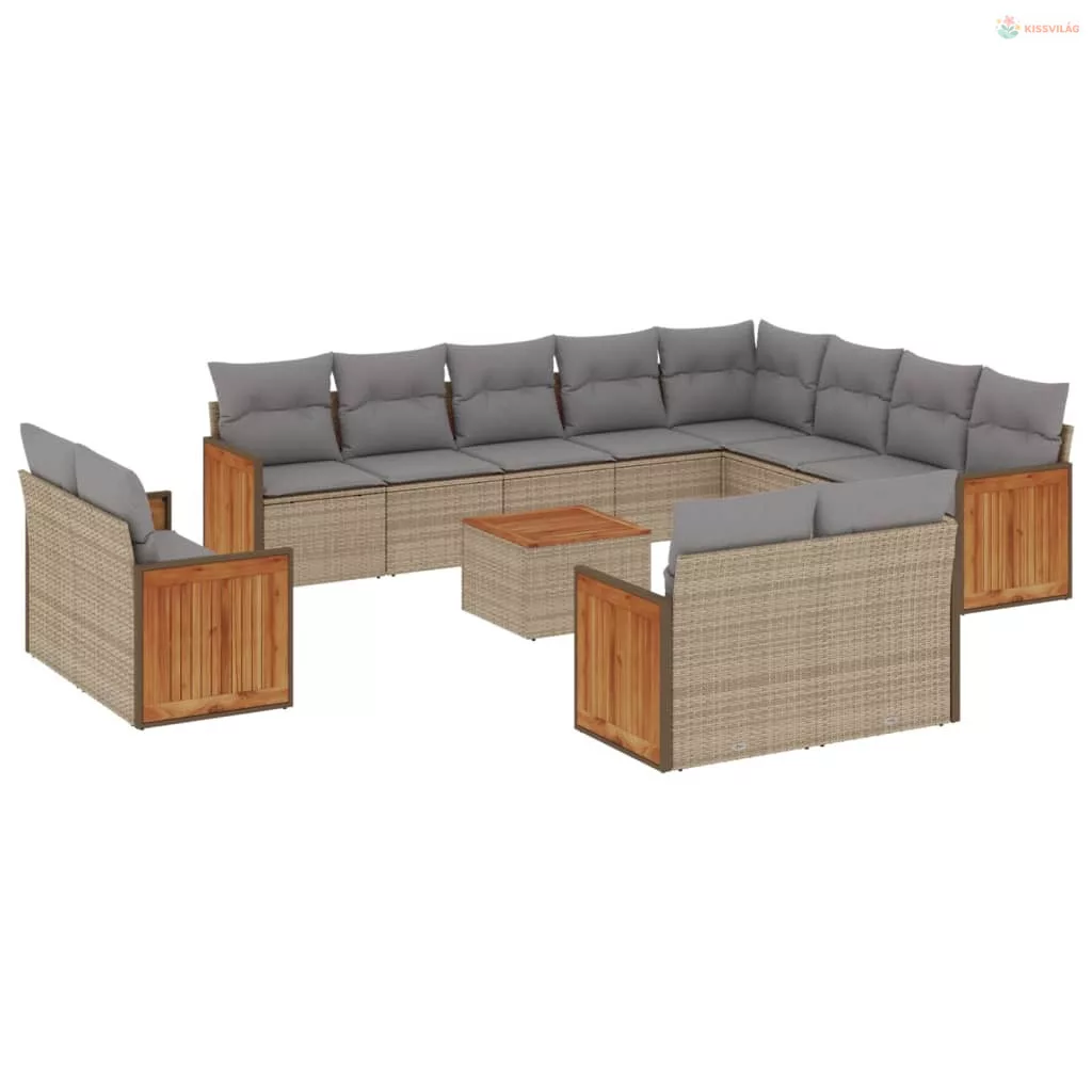 13 részes bézs polyrattan kerti ülőgarnitúra párnákkal