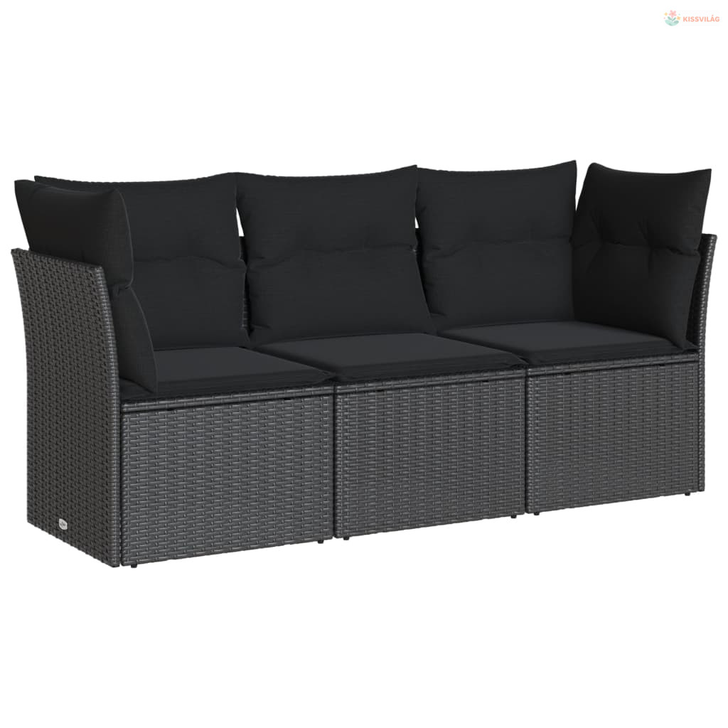 3 részes fekete polyrattan kerti ülőgarnitúra párnával