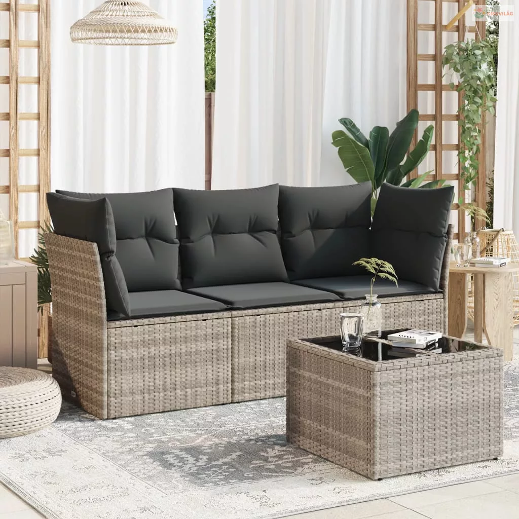 4 részes világosszürke polyrattan kerti ülőgarnitúra párnákkal