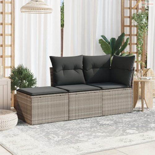 3 részes világosszürke polyrattan kerti ülőgarnitúra párnával