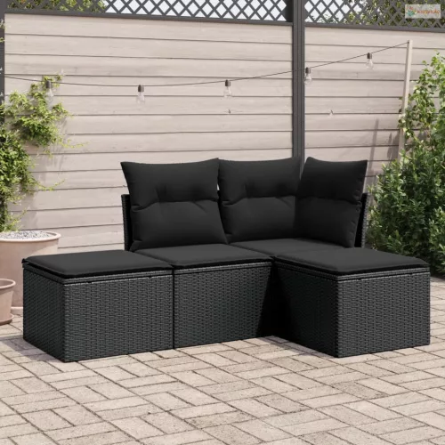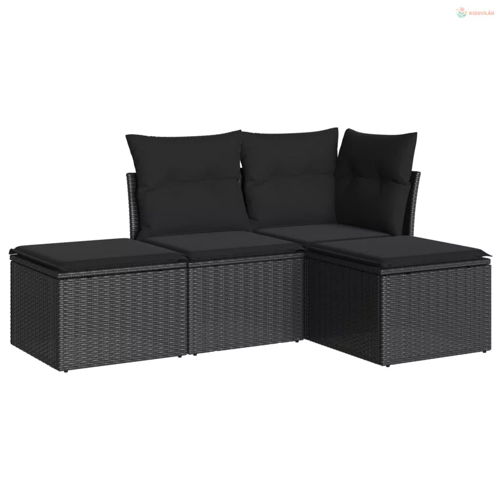 4 részes fekete polyrattan kerti ülőgarnitúra párnákkal