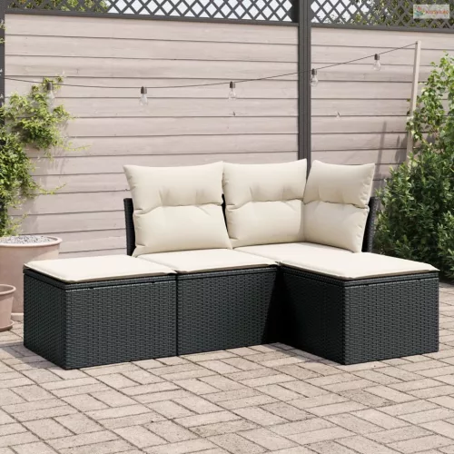 4 részes fekete polyrattan kerti ülőgarnitúra párnákkal