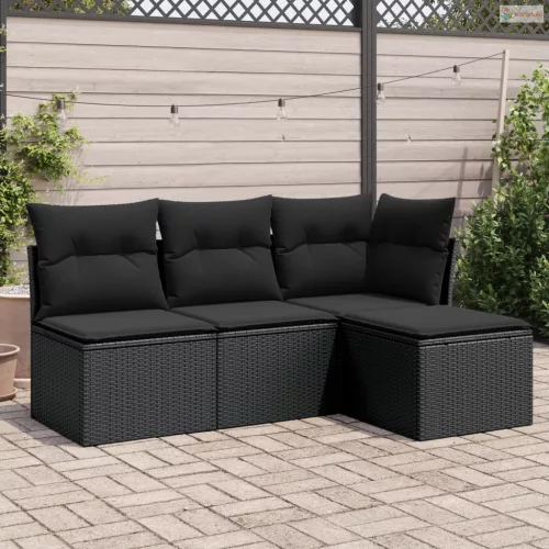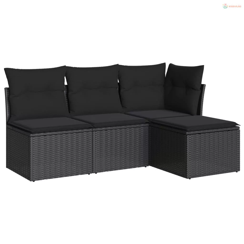4 részes fekete polyrattan kerti ülőgarnitúra párnákkal