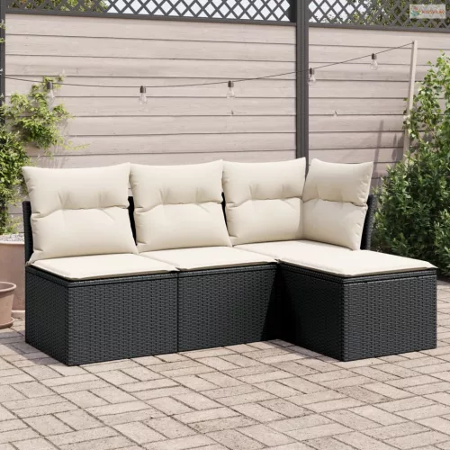 4 részes fekete polyrattan kerti ülőgarnitúra párnákkal