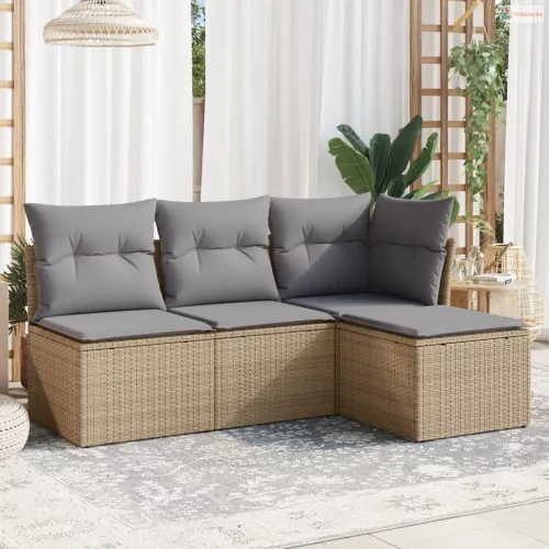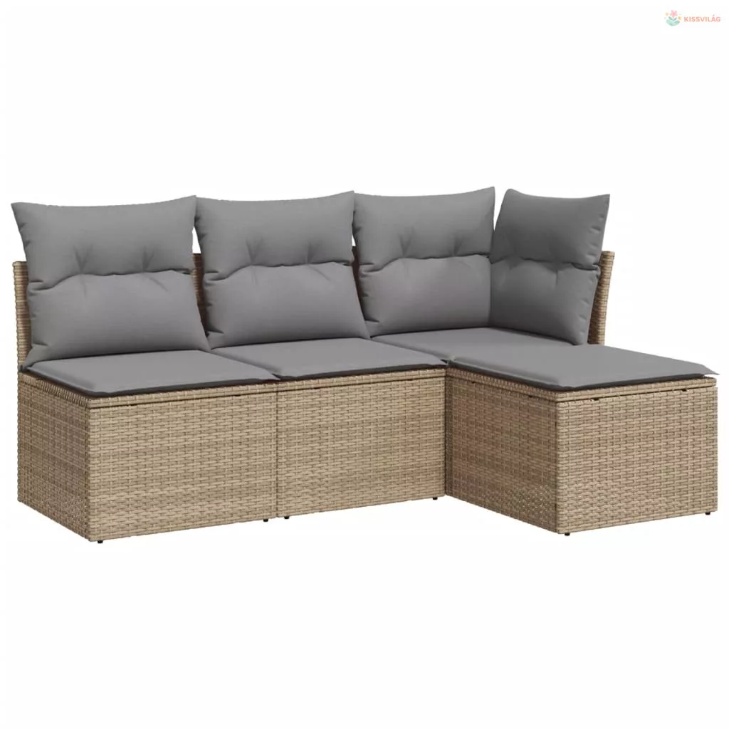 4 részes bézs polyrattan kerti ülőgarnitúra párnákkal