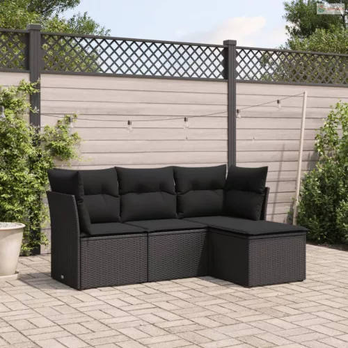 4 részes fekete polyrattan kerti ülőgarnitúra párnákkal
