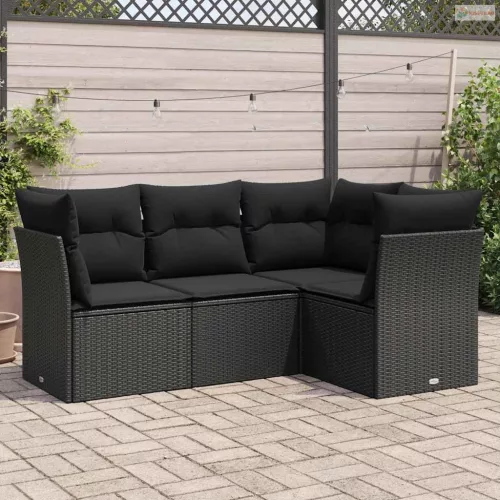 4 részes fekete polyrattan kerti ülőgarnitúra párnákkal