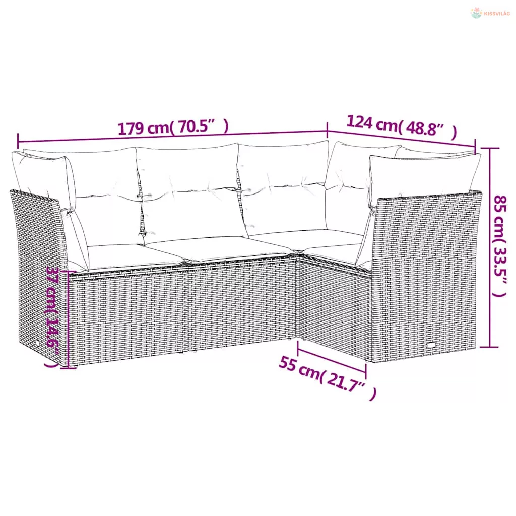 • Kanapé teljes mérete: 179 x 124 x 69 cm (Szé x Mé x Ma)
