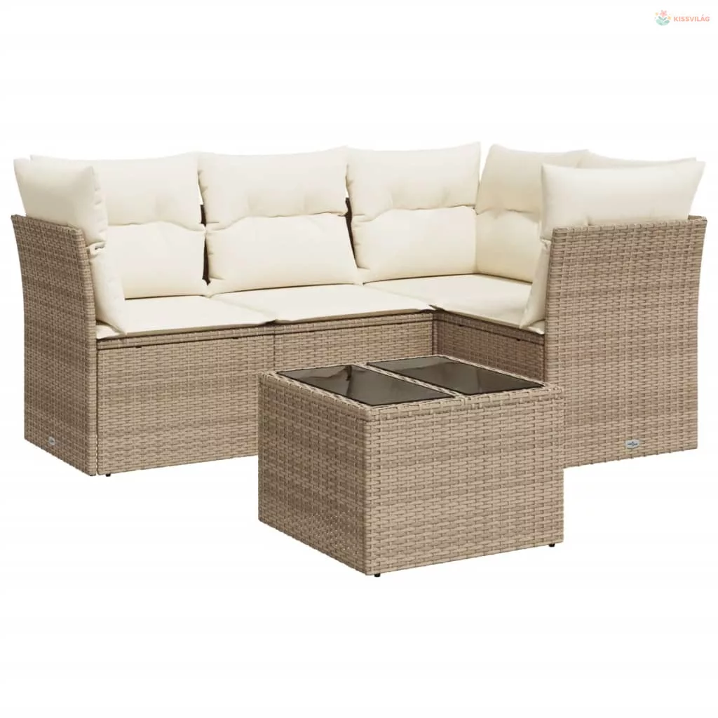 5 részes bézs polyrattan kerti ülőgarnitúra párnákkal