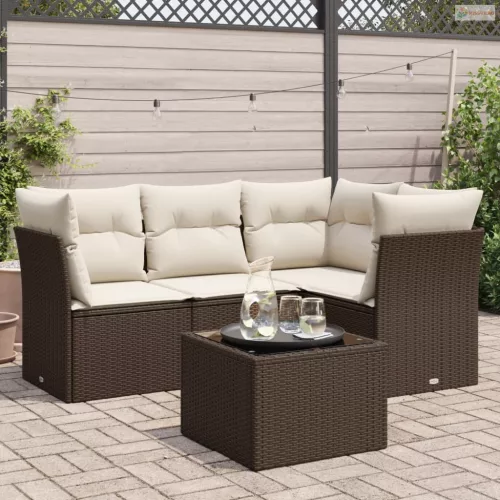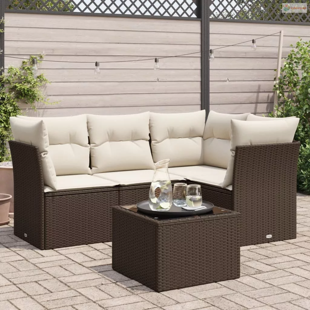 5 részes barna polyrattan kerti ülőgarnitúra párnával