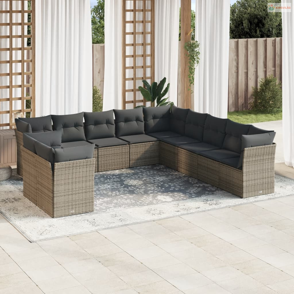 11 részes szürke polyrattan kerti ülőgarnitúra párnákkal