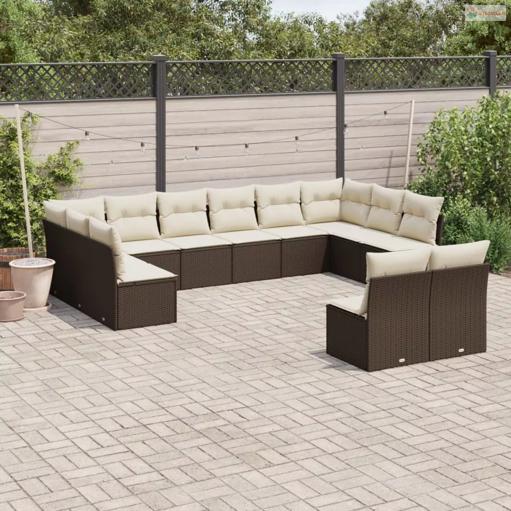 12 részes barna polyrattan kerti ülőgarnitúra párnákkal