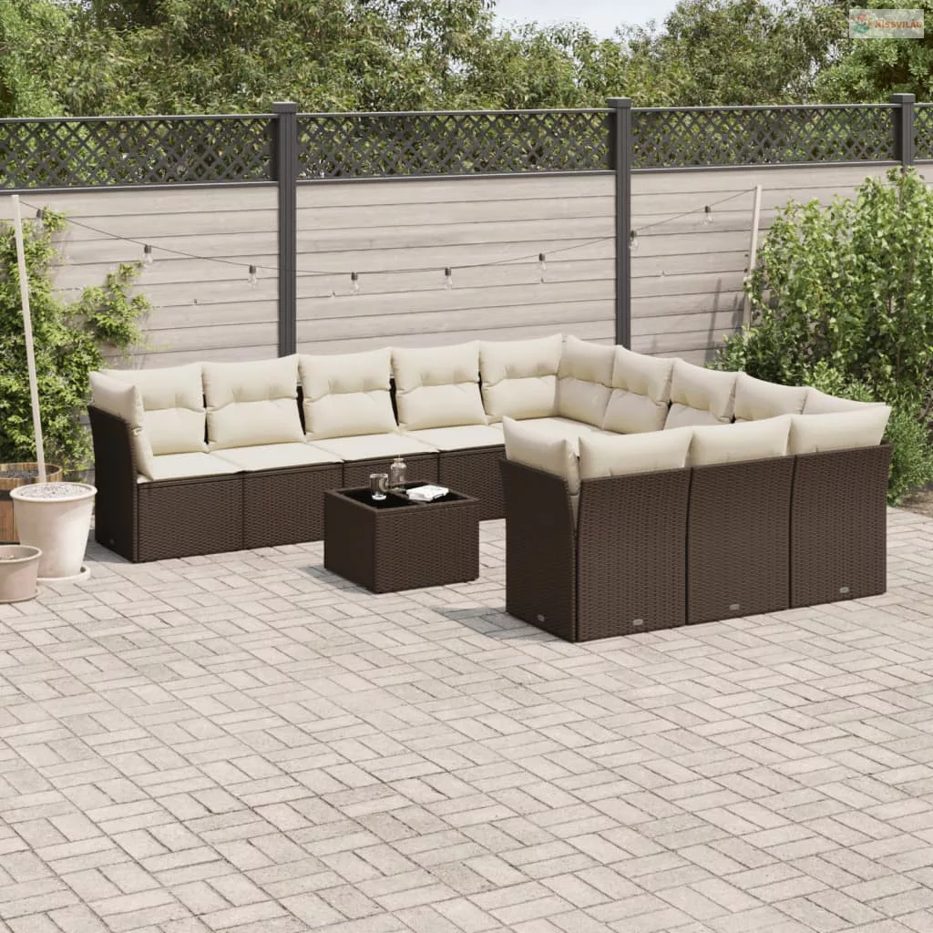 12 részes barna polyrattan kerti ülőgarnitúra párnákkal