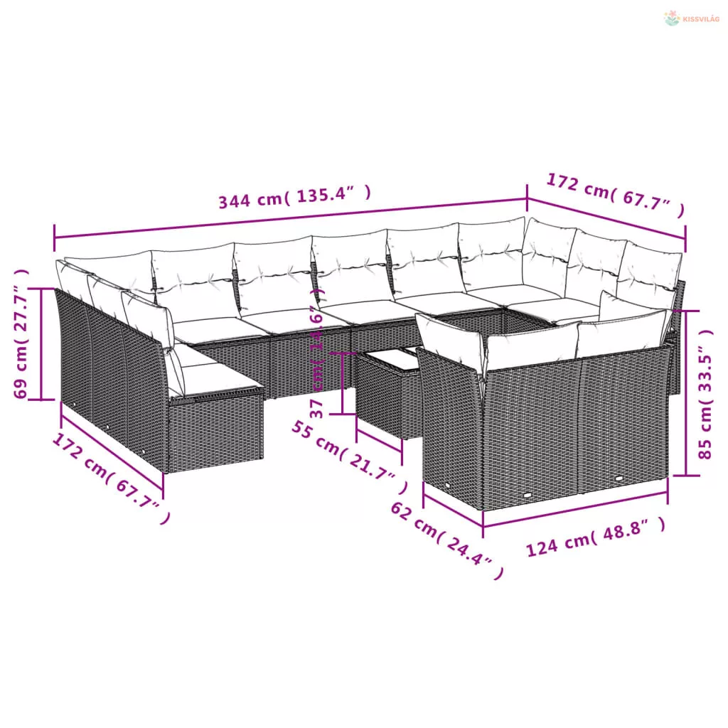13 részes fekete polyrattan kerti ülőgarnitúra párnákkal