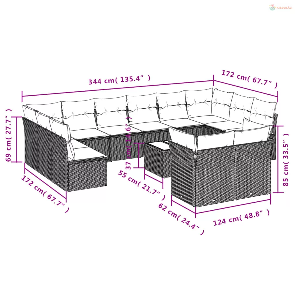 13 részes bézs polyrattan kerti ülőgarnitúra párnákkal