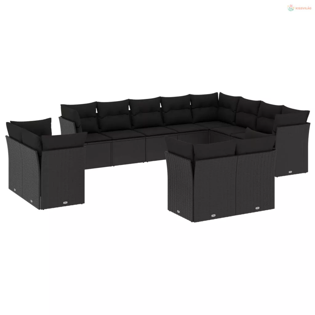 12 részes fekete polyrattan kerti ülőgarnitúra párnákkal