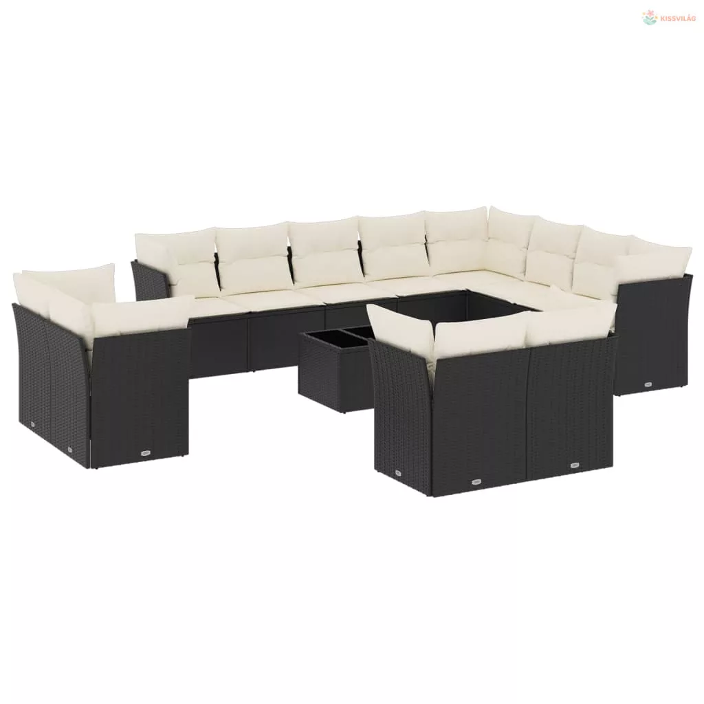 13 részes fekete polyrattan kerti ülőgarnitúra párnákkal