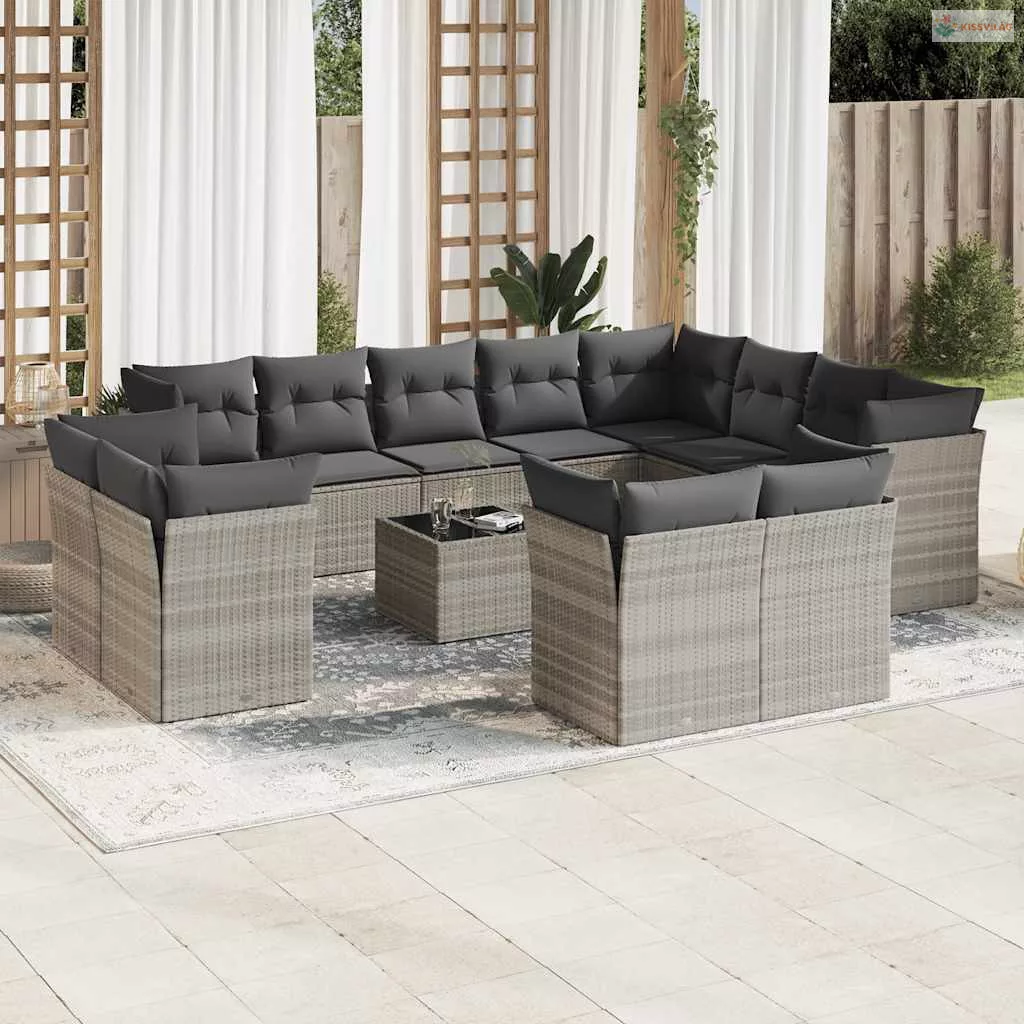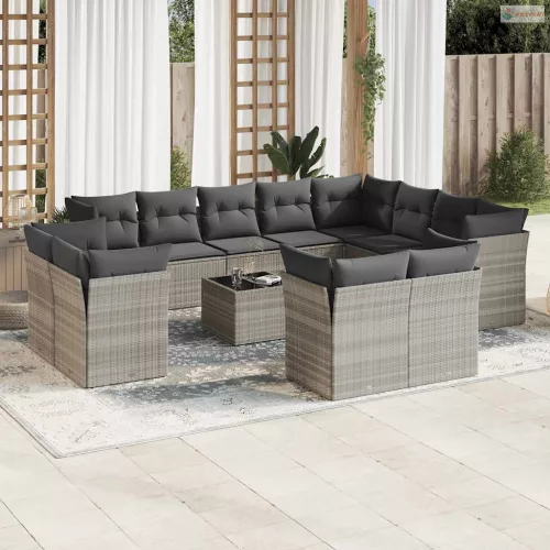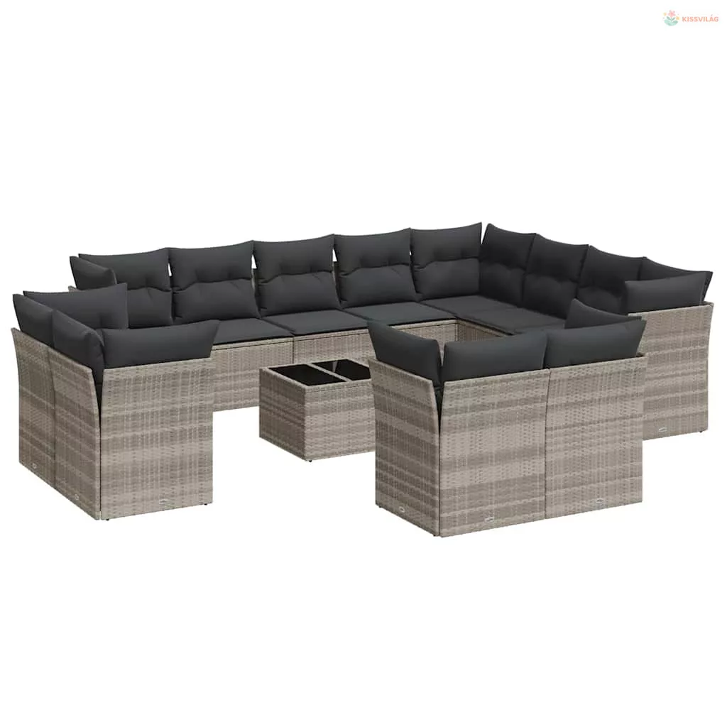 13 részes világosszürke polyrattan kerti ülőgarnitúra párnákkal