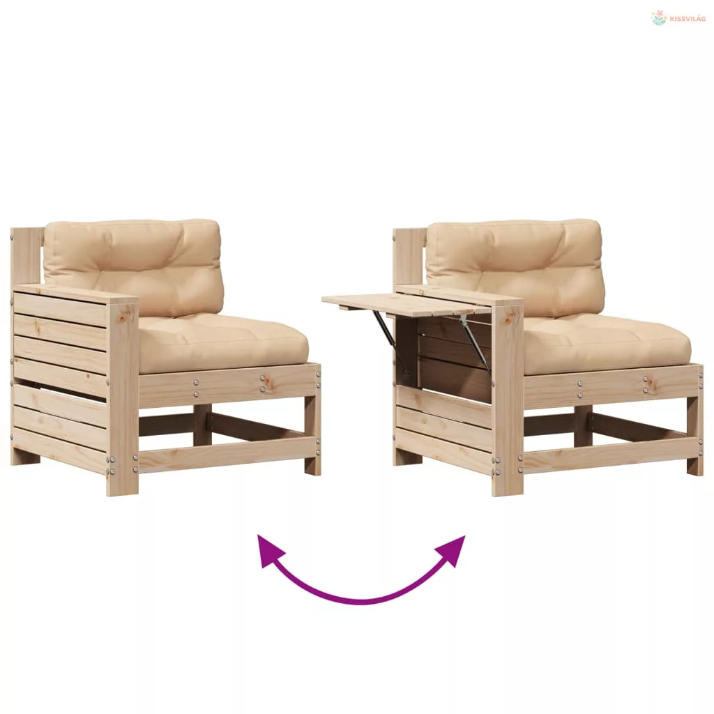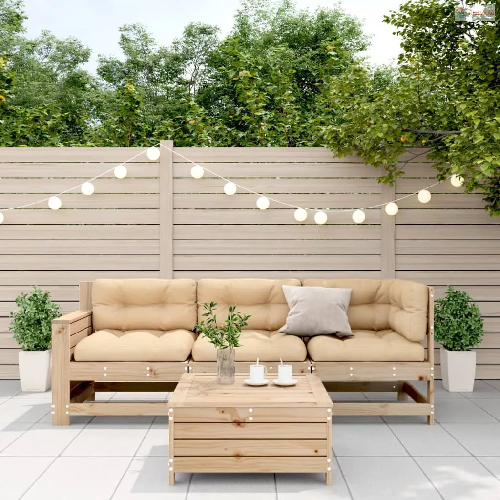 4 részes tömör fenyőfa kerti ülőgarnitúra párnákkal