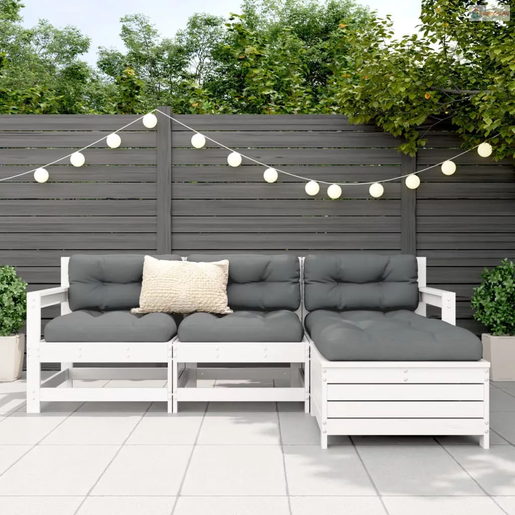 4 részes fehér tömör fenyőfa kerti ülőgarnitúra