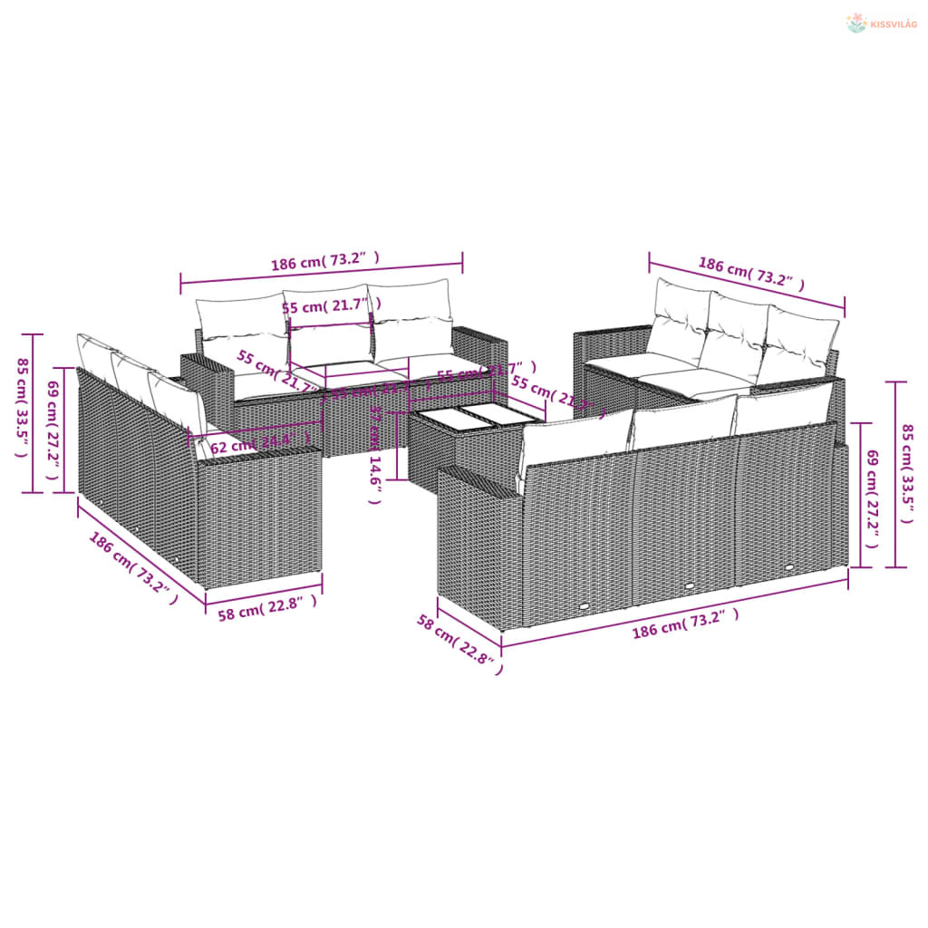 13 részes barna polyrattan kerti ülőgarnitúra párnákkal