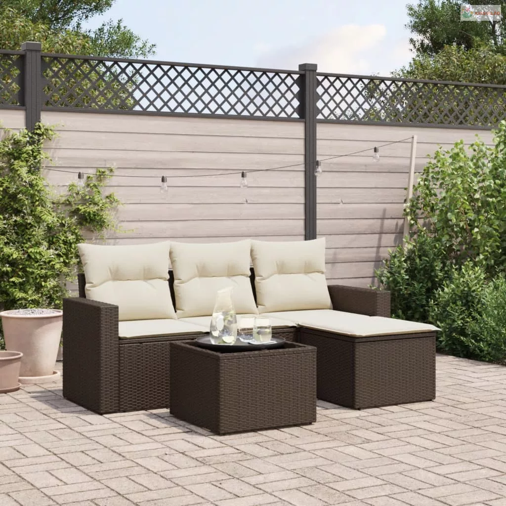 5 részes barna polyrattan kerti ülőgarnitúra párnával