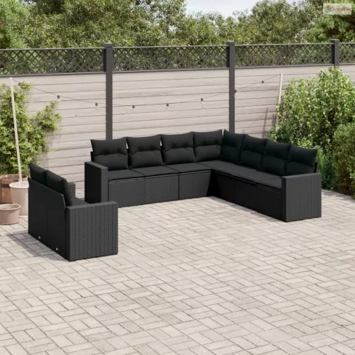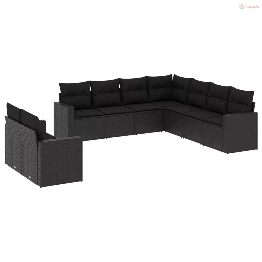 9 részes fekete polyrattan kerti ülőgarnitúra párnákkal