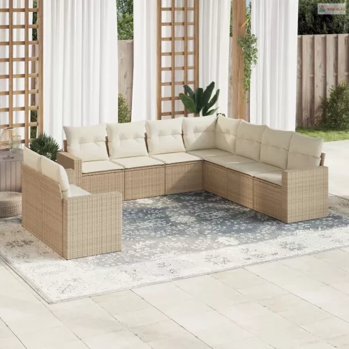 9 részes bézs polyrattan kerti ülőgarnitúra párnákkal