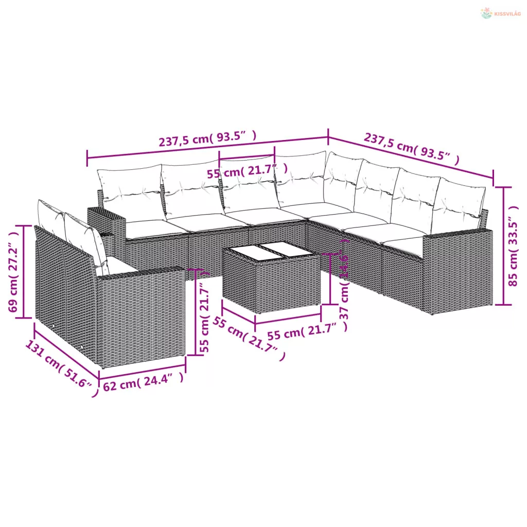 10 részes bézs polyrattan kerti ülőgarnitúra párnával