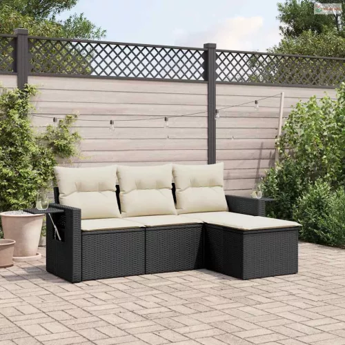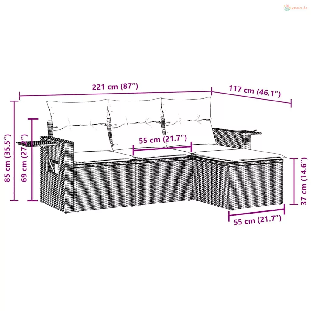 4 részes fekete polyrattan kerti ülőgarnitúra párnákkal