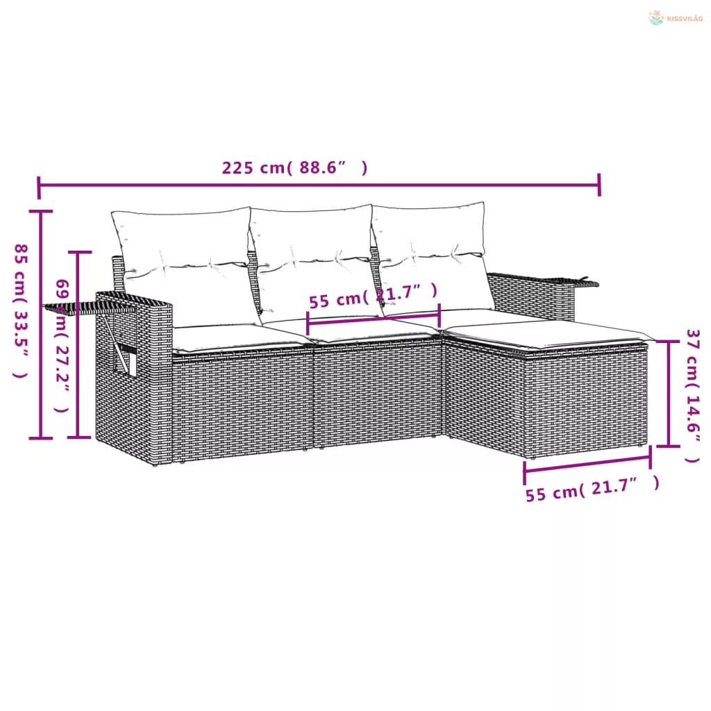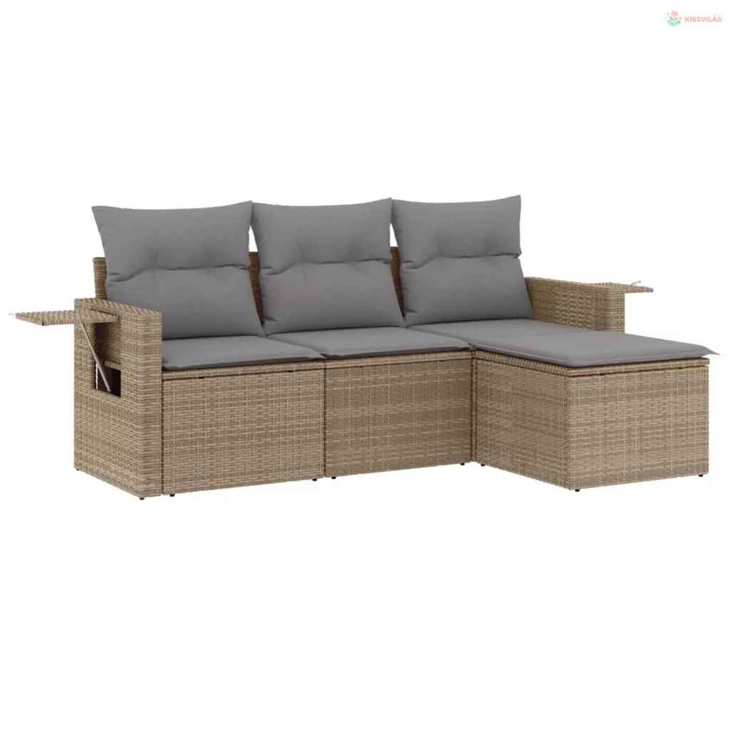 4 részes bézs polyrattan kerti ülőgarnitúra párnákkal