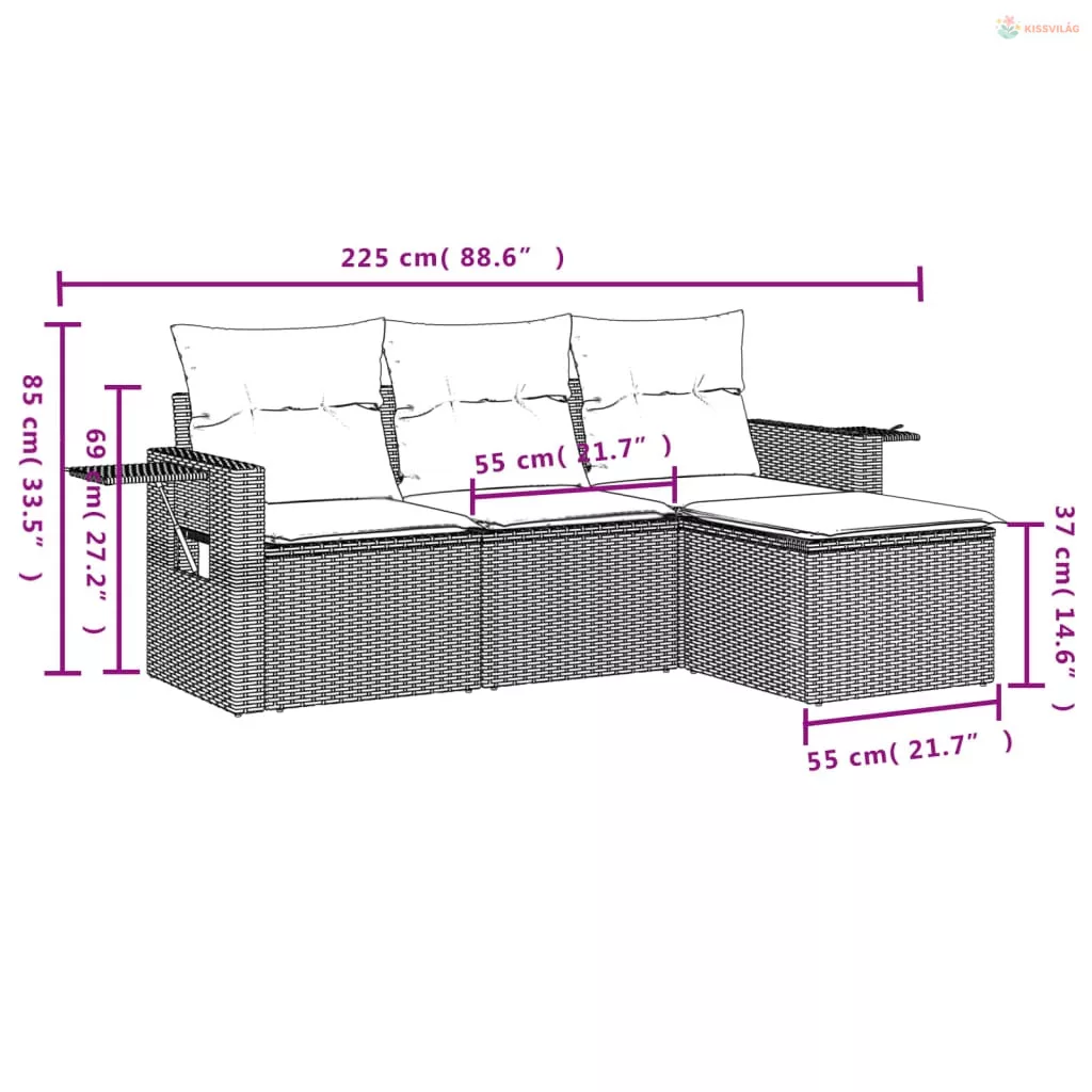 4 részes barna polyrattan kerti ülőgarnitúra párnákkal