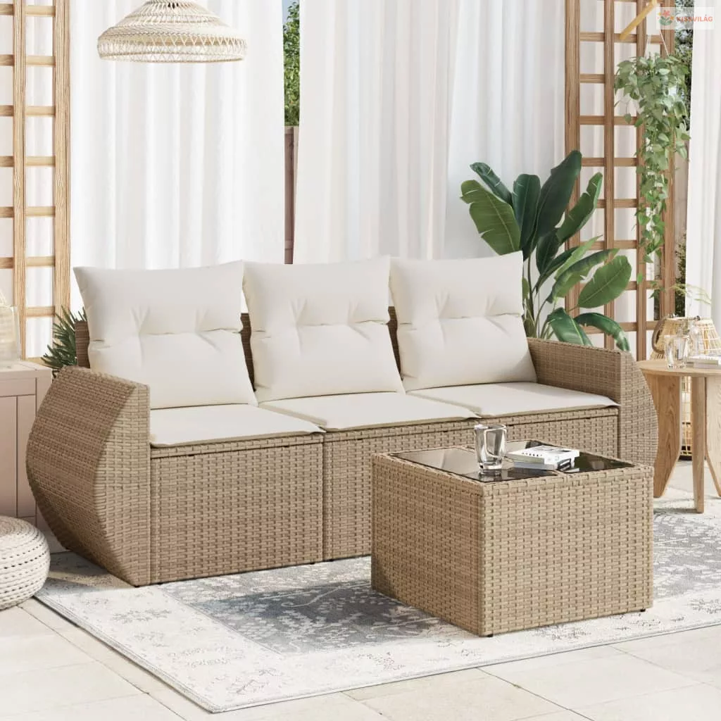 4 részes bézs polyrattan kerti ülőgarnitúra párnákkal