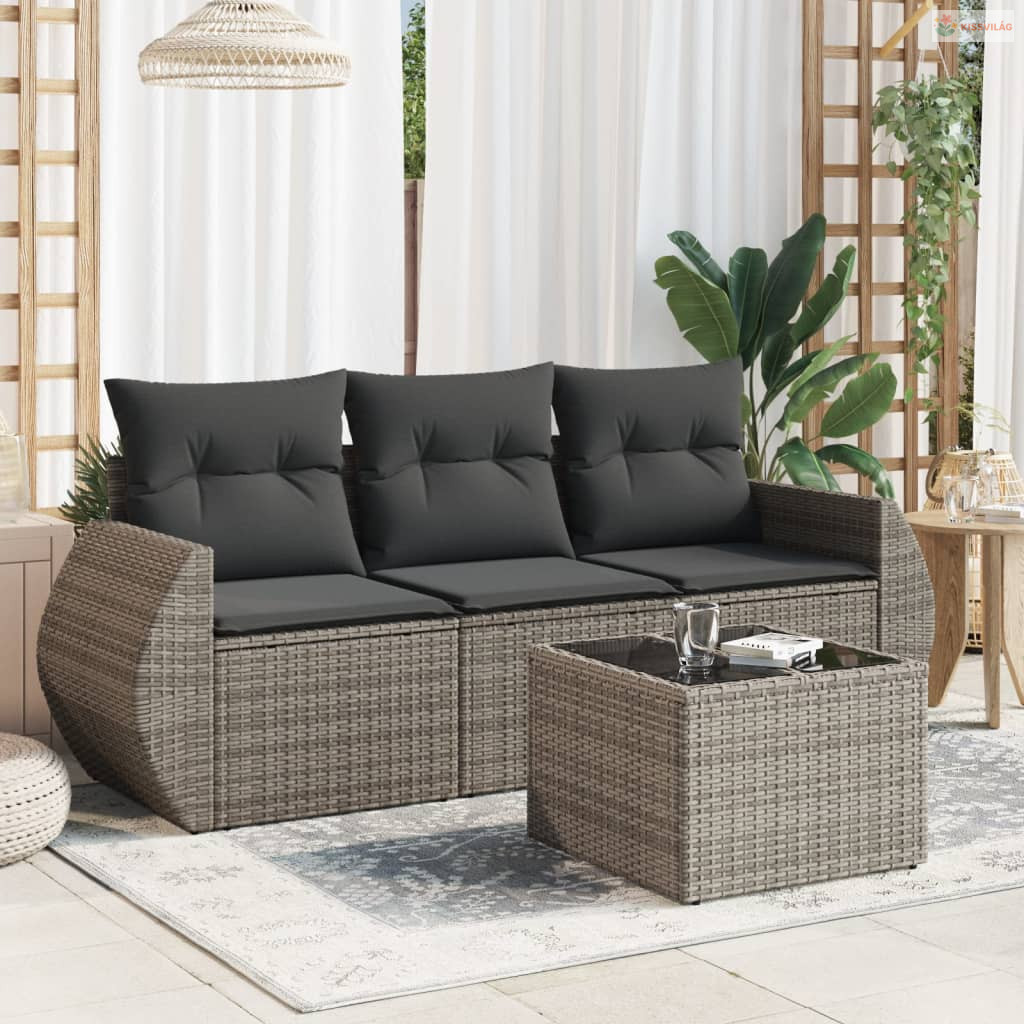 4 részes szürke polyrattan kerti ülőgarnitúra párnákkal