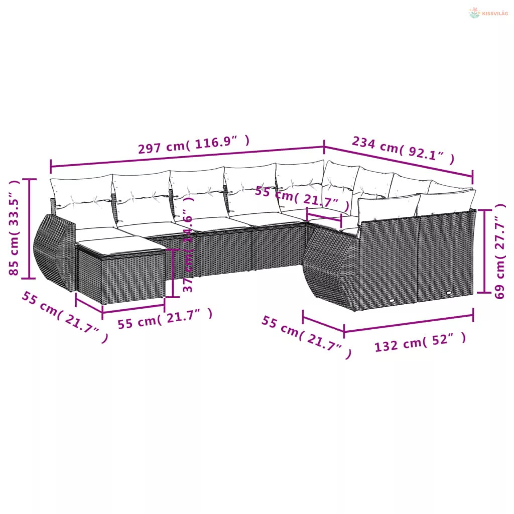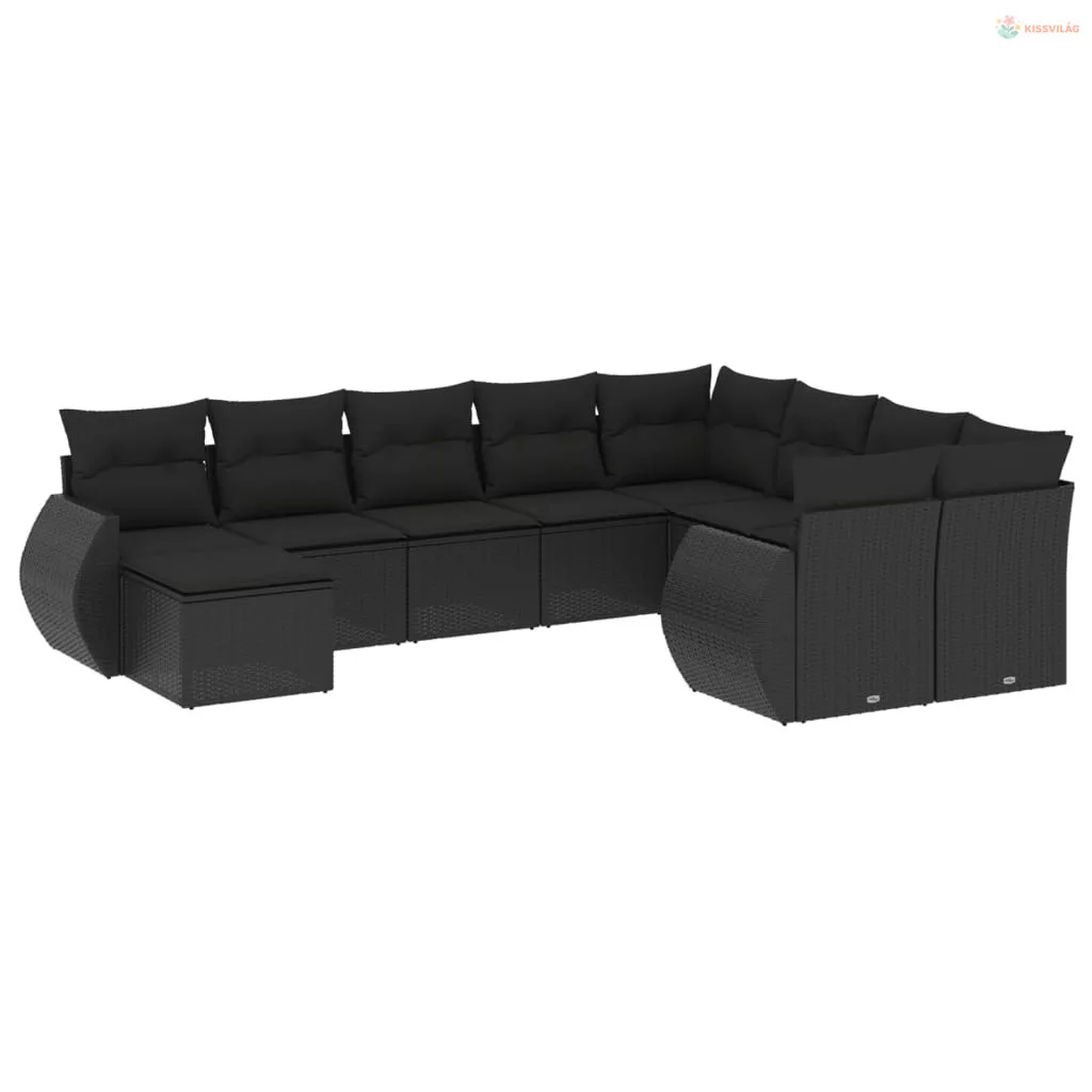 10 részes fekete polyrattan kerti ülőgarnitúra párnákkal