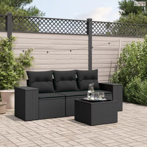 4 részes fekete polyrattan kerti ülőgarnitúra párnákkal