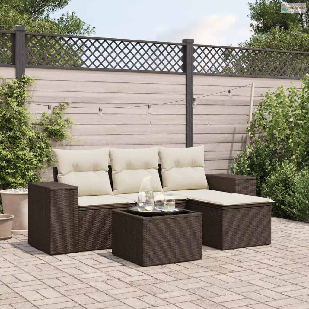 5 részes barna polyrattan kerti ülőgarnitúra párnával