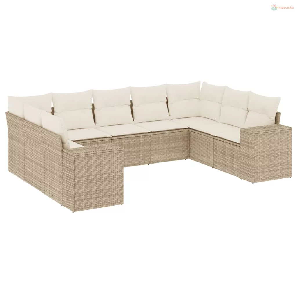 9 részes bézs polyrattan kerti ülőgarnitúra párnákkal