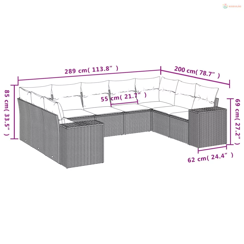 9 részes világosszürke polyrattan kerti ülőgarnitúra párnával