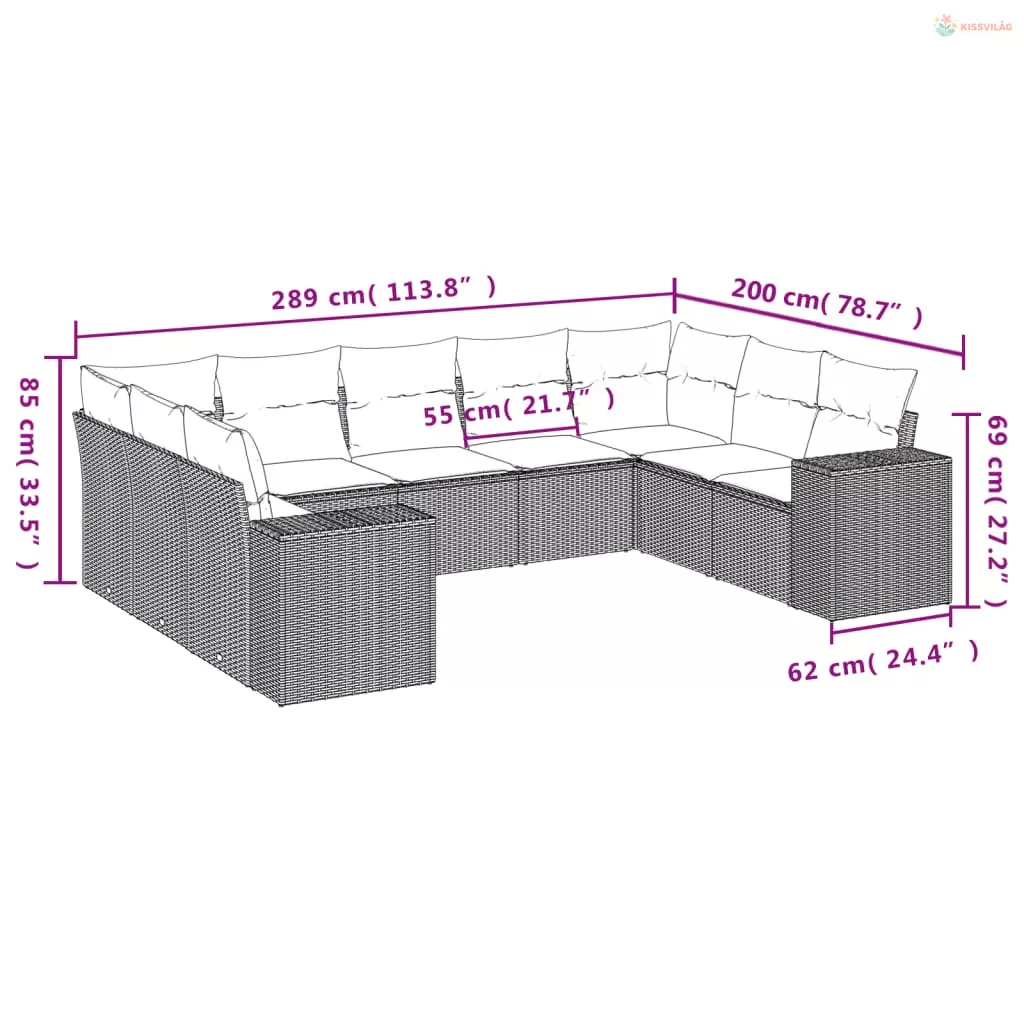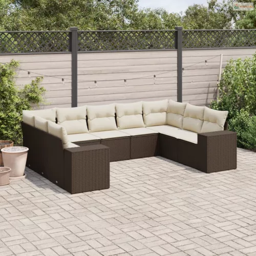 9 részes barna polyrattan kerti ülőgarnitúra párnákkal